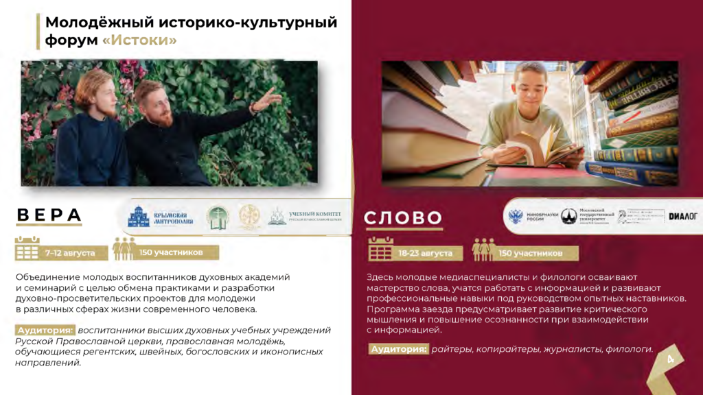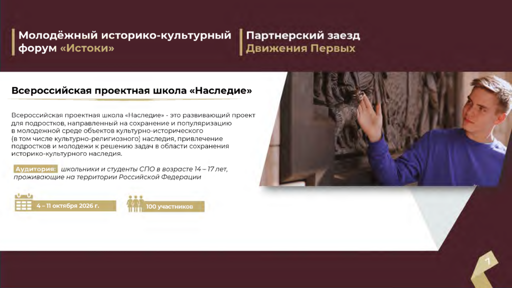 - Цель Форума — укрепление традиционных духовно-нравственных ценностей, формирование любви к Родине и бережного отношения к истории Отечества, культурному наследию и традициям своего народа и семьи, в рамках которого состоится конкурс Росмолодежь. Гранты на реализацию социально значимых инициатив.